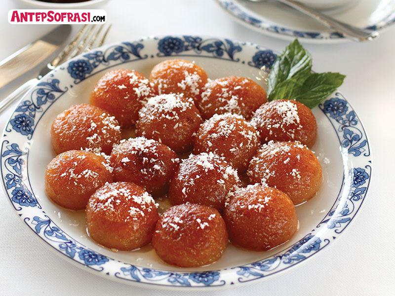 - Önceden ısıtılmış 180 dereceye ayarlı fırında pembeleşinceye kadar 20-25 dakika pişirin. Pişen hamurları ılık şerbete atıp yumuşayıncaya kadar yaklaşık 15 dakika kaynatın. Kevgirle alıp servis tabağına dizin. Üzerini ufalanmış fındık veya hindistan cevizi ile süsleyin.