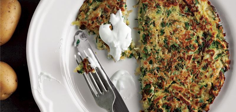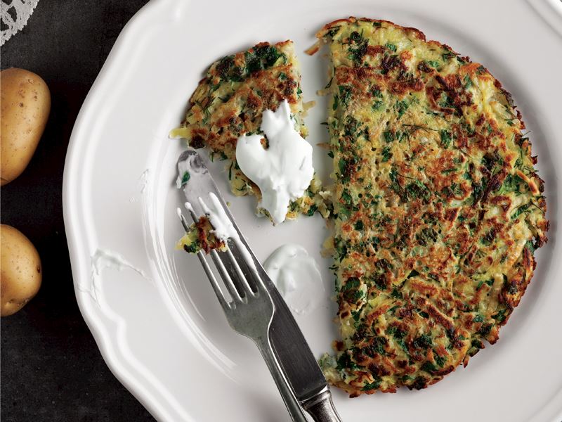Rendelediğiniz patates, kereviz ve soğanı geniş bir kaseye alın. İnce kıydığınız maydanoz, yumurtalar, un, tuz ve karabiberi ilave edip karıştırın. Hazırladığınız harcın tamamını yağladığınız yapışmaz yüzeyli bir tavaya yayın. Her iki tarafını da kızartın. Yağlı kağıt üzerine alıp fazla yağını çektirin. Sosu için gerekli tüm malzemeyi bir kasede karıştırın. Kerevizli patates mücverini bir servis tabağına alın. Yanında hazırladığınız sos ile servis yapın.
