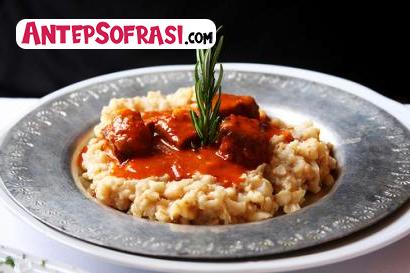 - Tabağa keşkeği aldıktan sonra yahniyi üzerine yerleştirerek se