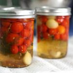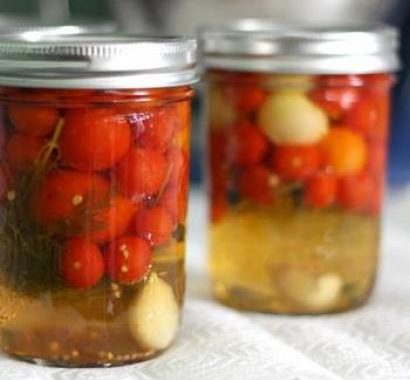 - Domates rendesinin içine tuz, sirke, sarımsaklar ve biberler karıştırılıp kavanoza doluyor.