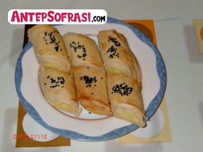 - 3 adet yufka3 yemek kaşığı margarin veya tereyağı1 çay bardağı sıvıyağsu1 adet yumurta (sarısı üzerine,beyazı içine)unpeynir veya patates Yapılışı:Tezgahın üzerine 1 adet yufkayı seriyoruz. Ortasını belirledikten sonra yarısını yağlıyoruz. Daha sonra 2 yemek kaşığı suyu da eşit şekilde yufkanın üzerine serpiyoruz. Asıl püf noktası şimdi: Unu bir eleğe alıp yarım yufkanın üzerine heryerine gelecek şekilde serpiyoruz. Bundan sonra yufkanın diğer yarısını da üzerine kapatıp aynı işlemleri tekrarlıyoruz. Yani;önce yağlıyor,suyla hafif ıslatıyor,sonra da üzerine ince bir tabaka un eliyoruz. (Böylece yufkanın kıtırlaşmasını sağlıyoruz.) ,En son olarak da uzun kenara isterseniz peynir ve maydanoz karışımı,isterseniz haşlayıp ezdiğiniz ve karabiber-kimyonla tatlandırdığınız patatesi yerleştirip rulo yapıyoruz. Bu şe