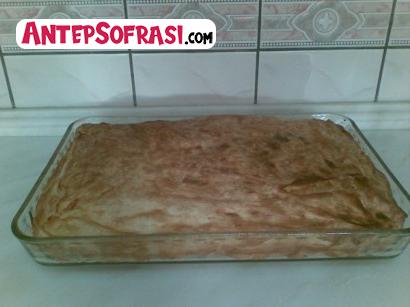 - Soğan yemeklik doğranıp tereyağında pembeleştirilir. Kıyma ilave edilir iyice kavrulur. Baharatlar ilave edilip tencerenin altı kapatılır. Kıyma soğurken bir yandan da bir kabın içerisine 3 yumurta , süt ve yağ ilave edilerek iyice karıştırılır. Yufkalar bu karışım içine batırılarak tereyağı ile yağlanmış borcama dizilir. 2 buçuk yufka bu şekilde harcın içine batırılarak borcama dizilir.Bu katların üzerine kavrulmuş kıyma dökülür. Kalan yufkalar da aynı işlemden geçirilerek kıymalı katın üzerine serilir. Kalan yumurtalı harç da böreğin üzerine dökülür ve fırına verilerek pişirilir.