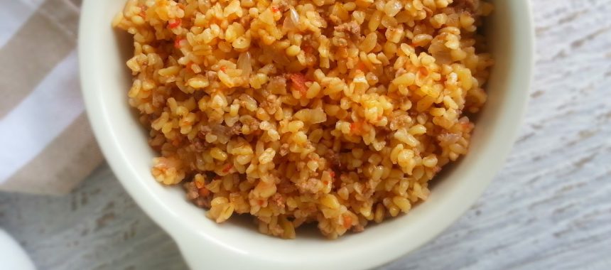 Kavrulan bu karışımın üzerine 4 bardak kaynar su ve tuz konup etler yumuşayana kadar pişirilir. Üzerine 2 bardak bulgur ilave edip suyu çekilene kadar 20 dakika pişirilir.