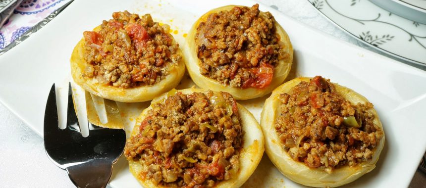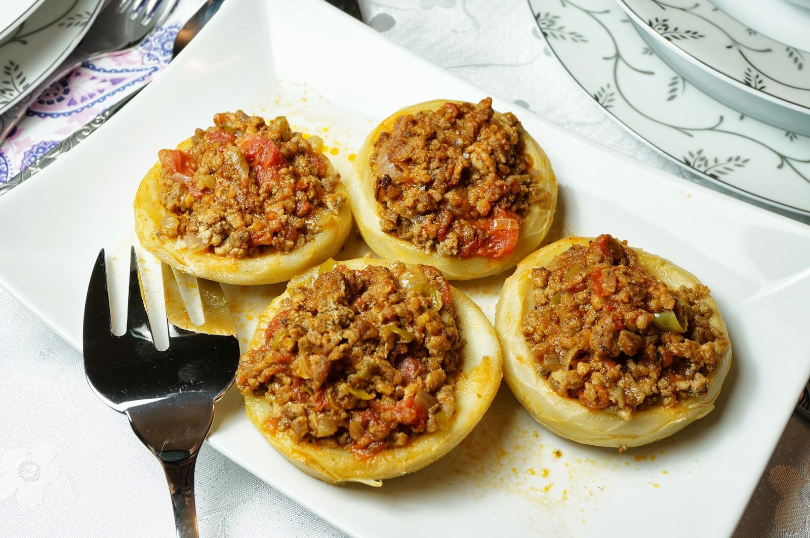 Bir tavada tereyağını eritin. Yemeklik doğradığınız soğanları tavaya alıp kavurun. Ardından kıymayı ilave edin ve kavurmaya devam edin.