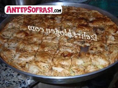 - Hazırlanması: Kıymayı kıyılmış maydanoz, soğan, tuz ve karabiberle biraz yağda, soğan sararıncaya kadar kavurun. Yufkaların yarısını ayırın. Birini kenarlı bir tepsinin içine, tepsinin kenarlarından taşırarak yayın. Yağı eritin3 yumurtayla sütü’ çırpıp bir sos hazırlayın.. Tepsiye her yufka koyuşta aralarına 2 kaşık yumurtalı süt veyağlı sos karışımından sürün.4 yufkayı bu şekilde yerleştirin ve Kıymalı harcı tepsideki yufkaların üstüne döşeyin. Kalan yufkaları da birer birer süt ve yağ ile yağlayarak üstüne koyun. En alttaki yufkanın uçlarını öbür yufkaların üstüne çevirin. Üstüne kalan yumurtalı yağlı süt karışımı olan sosu muntazam bir şekilde sürün. Orta ısılı fırında pişirin.