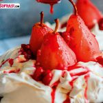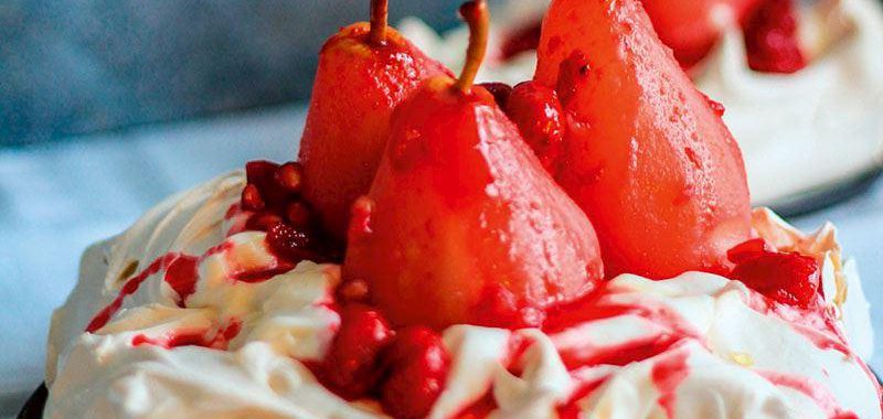 Kızılcık sosunda poşe armutlu pavlova yapılışı