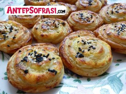 Milföy hamurları unlu zeminde merdaneyle açarak biraz büyütülür. Diğer yanda peynir ezilir, maydanoz kıyılır ve yumurta akıyla karıştırılır. Milföyü...