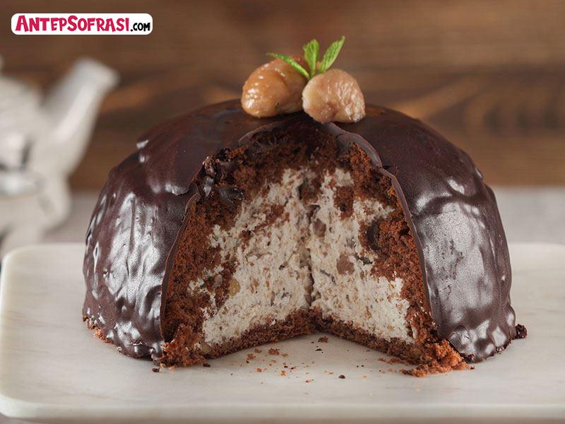 - Hazırladığınız iç harcı kalıbın içine yaydığınız kekin üzerine aktarın. Diğer kek parçası ile kasenin üzerini kapatın. Derin dondurucuda 30 dakika bekletin.