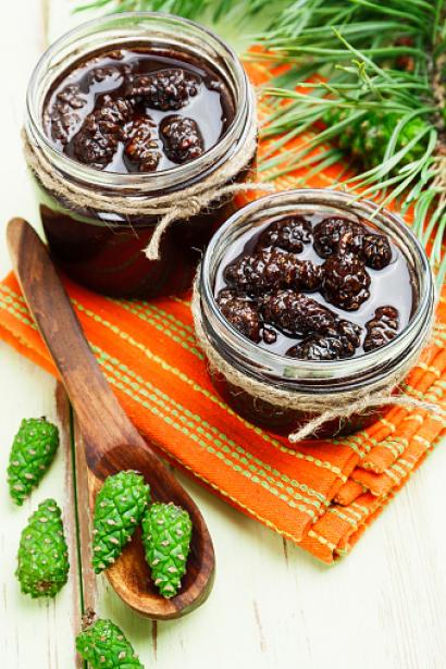 Taze kozalakları topladıktan sonra iyice yıkayın. 1 litre suda kozalakları 1 saat kaynatın. Şekeri ilave edin ve kaynatmaya devam edin. Oluşan köpükle...