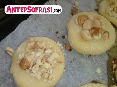 - ALDIĞI KADAR UN İLE SERT BİR HAMUR TUTALIM .ÇAY BARDAĞININ AĞZI İLE YUVARLAK ŞEKİL VERELİM .YUMURTA AKINA SONRADA TOZŞEKERE BATIRALIM VE ÜZERİNEDE KIRIK CEVİZ BADEM VE FINDIK KOYALIM 180 DERECEDE PİŞİRELİM .