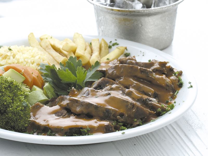 Eti dilimleyip bir kaseye alın. Tuz, karabiber ve limon suyunu ekleyip bir saat buzdolabında bekletin. Tereyağını geniş bir tavaya alıp eritin. Eti ilave edip nar gibi kızartın. Kızaran eti bir kenara alıp sıcak kalmasını sağlayın.