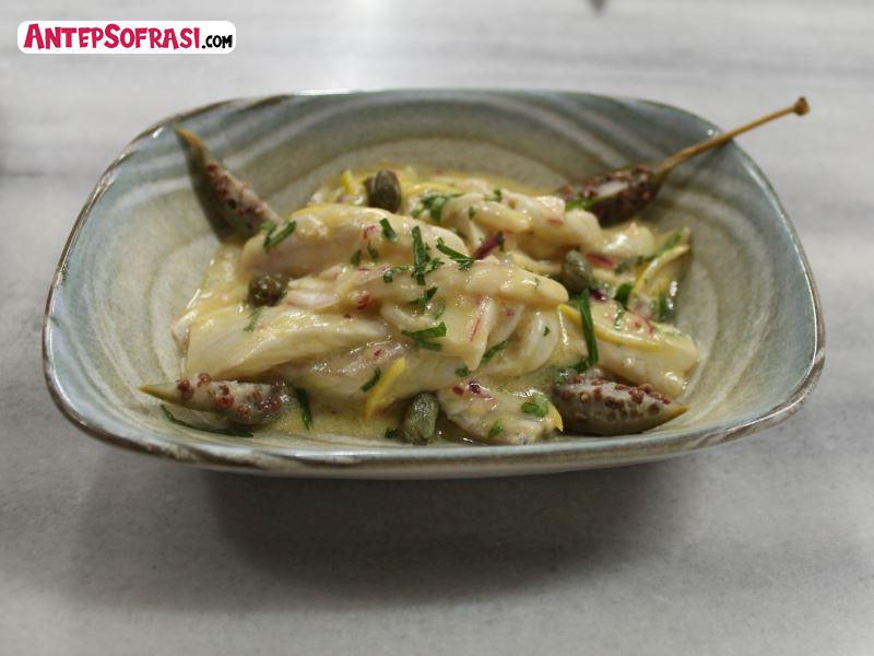 - Soğanı sıçan dişi doğrayın. Limon , limon suyu, tuzu ve balıkları karıştırın. 5 dakika bekletin.