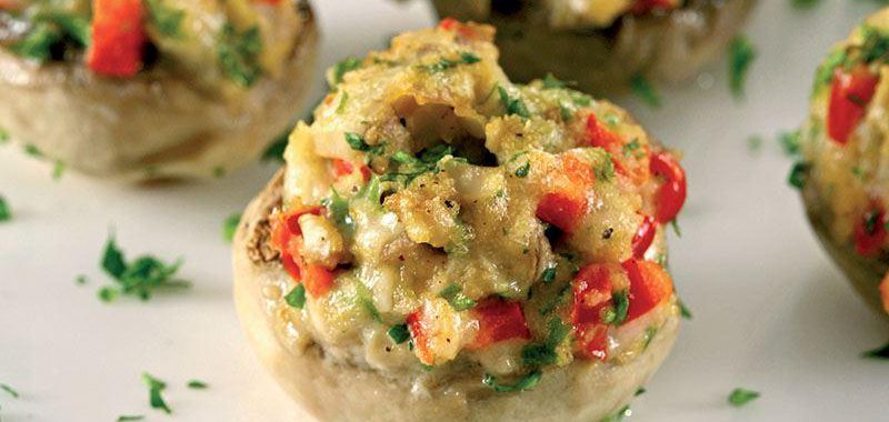 Mantarları limonlu sudan çıkartıp fırın kabına dizin. İçlerine küçük tereyağı parçaları yerleştirip 200 dereceye ayarlanmış fırında 10 dakika pişirin. Fırından çıkartıp kremalı karışımı içlerine paylaştırın ve tekrar fırına alarak 10 dakika daha pişirin. Bekletmeden sıcak servis yapın.