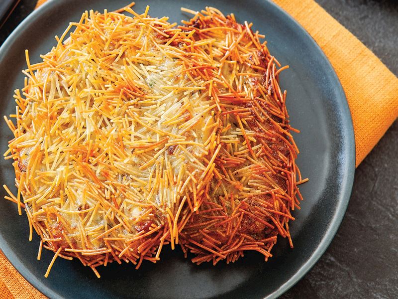 Patatesleri haşlayıp ezin. Yumurta akını bir kapta kar haline gelinceye kadar çırpın. Dereotunu ve taze soğanları yıkayıp kıyın. Unu ayrı bir kaba alıp rendelenmiş kaşar peyniri, tuz ve karabiberle harmanlayın. Dereotu, taze soğan, ince kıydığınız mantar ve ezdiğiniz patatesi ekleyip karıştırın. Yumurta akını azar azar ilave ederek yedirin. Pürüzsüz bir karışım elde edinceye kadar karıştırın. Yumurtayı bir kasede çırpın. Tel şehriyeyi bir tabağa alın. Patatesli mantarlı harçtan birer kaşık alarak elinizle yuvarlak şekil verin. Önce yumurtaya sonra tel şehriyeye batırın. Mücverleri kızgın yağda kızartın. İki tarafı da kızarınca kâğıt havlu üzerine alıp fazla yağını çektirin. Sıcak servis yapın.