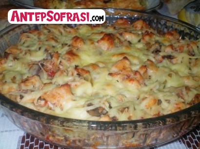 - -tuz Hazırlanması: Soğanları ve biberleri küçük küçük doğrayıp sıvıyağ*tereyağ karışımında pembeleşinceye kadar kavurun.Tavuk göğüslerini kuşbaşı doğrayıp karışıma ekleyin, tavuklar saldığı suyu çekene kadar pişirin. Domatesi ,kırmızı biberleri ve mantarı ekleyerek mantar ve tavuklar pişinceye kadar soteleyin.Tavuk ve mantarlar pişince baharatları ekleyerek bir fırın tepsisine alın. Üzerine kaşar peynir ekleyerek önceden ısıtılmış fırında peynir eriyinceye kadar pişirin. Herkese afiyet olsun. ''İftar Bereketi etkinliği 3 '' ev sahibi gelibolu17/ mideden kalbe