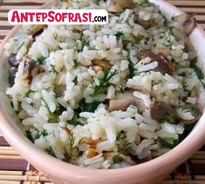 - Tavaya yağ konur doğranmış soğanlar çok az kavrulur doğranmış tavuklar ilave edilir ,tavuklar suyunu çekince iri iri doğranmış mantarlar konur kavrulur mantarlarda suyunu iyice çektiğinde yıkanmış ve süzülmüş pirinç konur ve kavrulur.