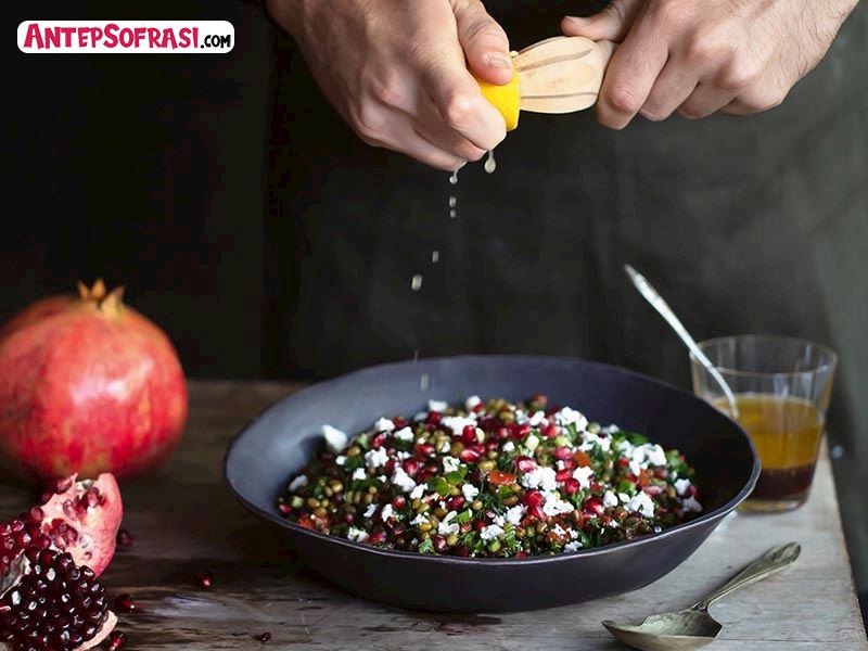 Maş fasulyeli ve narlı salata , kolay Maş fasulyeli ve narlı salata yapımı, Maş fasulyeli ve narlı salata resimli anlatımı ve birbirinden lezzetli Yılbaşı Yemekleri, Lezzet'te!