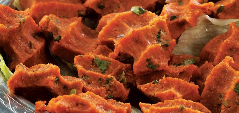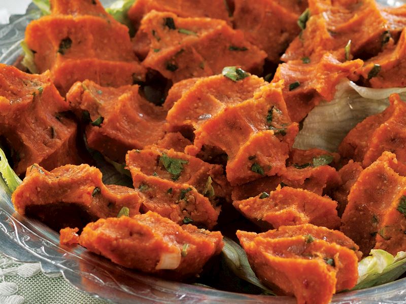 Mercimeği bol suyla yıkayıp tencereye alın. 3 su bardağı su ilave edip mercimekler yumuşayana kadar pişirin. Pişerken üzerinde biriken köpüğü bir kaşık yardımıyla temizleyin. İnce bulgur, salçalar, tarhun ve tuzu ekleyip kısık ateşte bulgur yumuşayana kadar pişirin. Tencereyi ocaktan alıp karışımı ılındırın. Soğanın ve sarımsakların kabuğunu soyup kıyın. Zeytinyağına ekleyip kısık ateşte kavurun. Tenceredeki karışıma ilave edin. Maydanozları temizleyip kıyın. Kırmızı toz biber, tuz, karabiber ve maydanozu ekleyip yoğurun. Parçalar koparıp şekillendirin. Yanında taze yeşilliklerle birlikte servis yapın.
