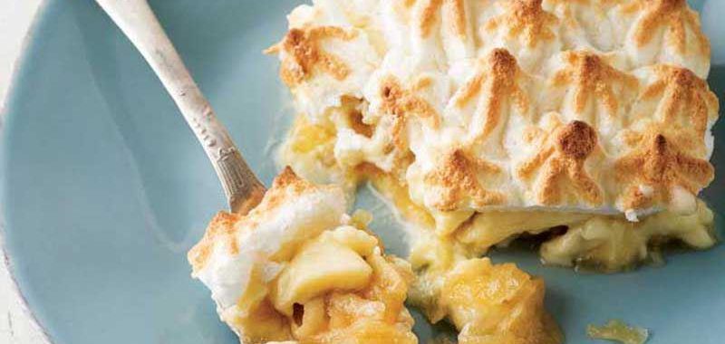 - Pudingin yarısını fırına dayanıklı bir kaba boşaltın ve eşit şekilde yayın, üzerine elmalı harcı dökerek eşit şekilde yayın. Geri kalan pudingi üzerine dökerek eşit şekilde yayın.