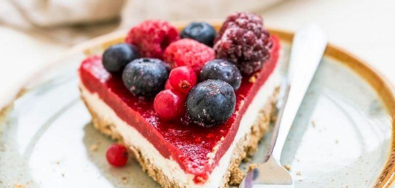 - Ardından buzluktaki frambuazlı karışımı da üzerine ekleyin. Süslemek için sevdiğiniz meyveleri pastanın üzerine yerleştirin. Soğuk bir şekilde servis edin. Afiyet olsun.