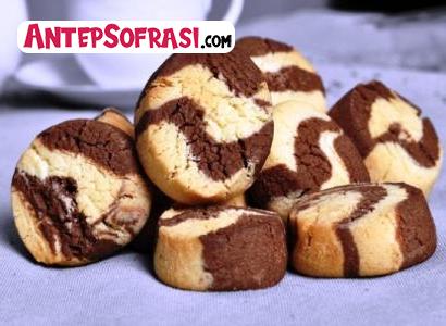- Yumuşatılmış tereyağı ve şekeri 2-3 dakika çırpıyoruz öncelikle... Ardından yumurta ve vanilyayı ekleyip 1-2 dakika daha çırpıyoruz. Ayrı bir kapta eleyerek kabartma tozuyla karıştırdığımız unu da ilave ederek yoğurup yumuşak bir hamur elde ediyoruz. Hamuru ikiye bölüp yarısına kakaoyu ,yarısına da portakal kabuğunu ekliyoruz. Biraz daha yoğurduktan sonra donup sertleşmesi için streç filme sarıp buzdolabına koyuyoruz. 1 saat buzdolabında beklettikten sonra çıkarıp merdane ile ayrı ayrı 1-1,5 cm kalınlığında açıyoruz ve her iki hamurdan da uzun şeritler kesiyoruz. Kestiğimiz hamurları streç film üzerinde fırça ile yumurta akı sürerek portakallı ,yanına kakaolu ,yanına tekrar portakallı hamur gelecek şekilde yanayana diziyoruz. Tekrar yumurta akı sürerek bu kez portakallının üzerine kakaolu ,kakaolunun üzerine portakallı hamur gelecek şekilde bir kata daha diziyoruz ve aynı şekilde bir kat daha dizdikten sonra streç filme sarıp tekrar buzdolabına koyuyoruz.