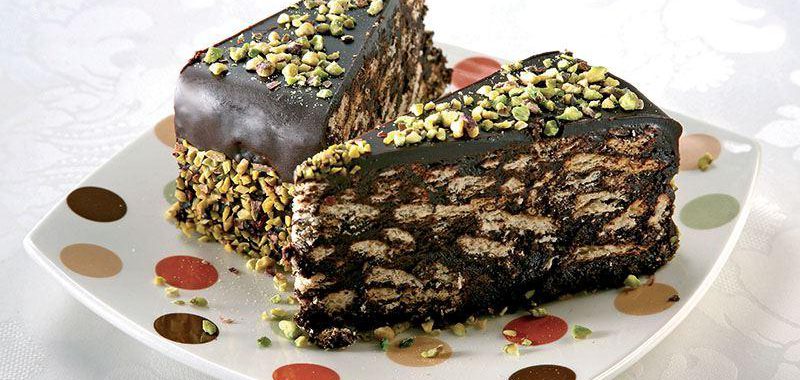 - Pastayı kalıptan çıkardıktan sonra çikolata sosunu üzerine dökün. Antep fıstığını kenarlarına ve üzerine serpiştirin.