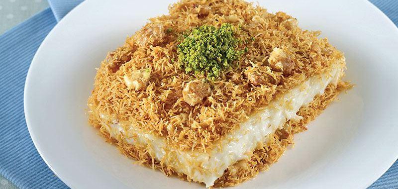 - Kavrulan kadayıfın yarısını bir kalıbın içerisine bastırarak yayın. Üzerine hazırladığınız muhallebiyi dökün ve bir kaşık yardımıyla her yere yayın. Kalan kadayıfları da muhallebinin üzerine dökerek buzdolabında bekletin.