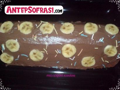 - Ortadaki büsküvilerin üstüne muzları koyun.