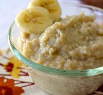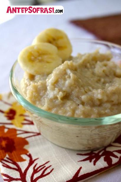 - fırından çıkardığınız muzları ezin ve pirinç ve tarçınla karıştırın, dilerseniz rondodan geçirebilirsiniz.İçine biraz da su koyabilirsiniz.