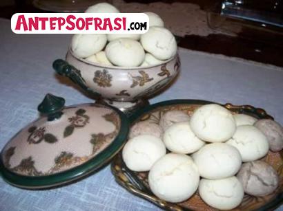 - Sonra diğer malzemeleri ilave edin, aldığı kadar un ilave edip yumuşak bir hamur elde edin ceviz kadar parçalar koparıp, ortadan biraz yüksek ısıda fırında üstü beyaz kalacak şekilde pişer .