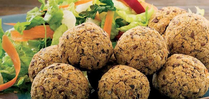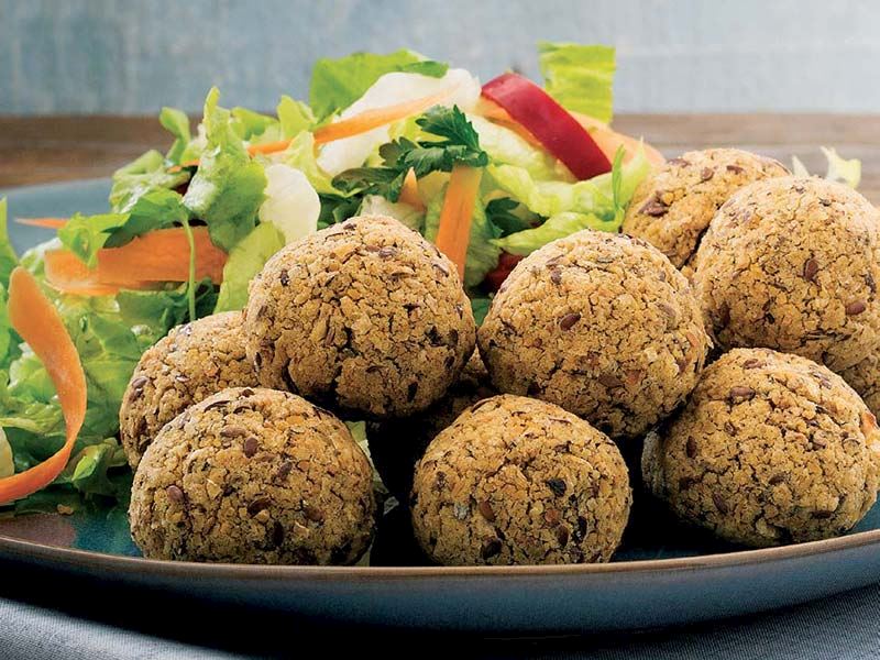 - Haşlanmış nohutları mutfak robotundan geçirin. Keten tohumu ve suyu karıştırıp nohuta ekleyin. Geri kalan tüm malzemeleri ekleyip karıştırın. Karışımdan birer yemek kaşığı alıp elinizle yuvarlayın. Köfteleri yağlı kağıt serili fırın tepsisine dizin.