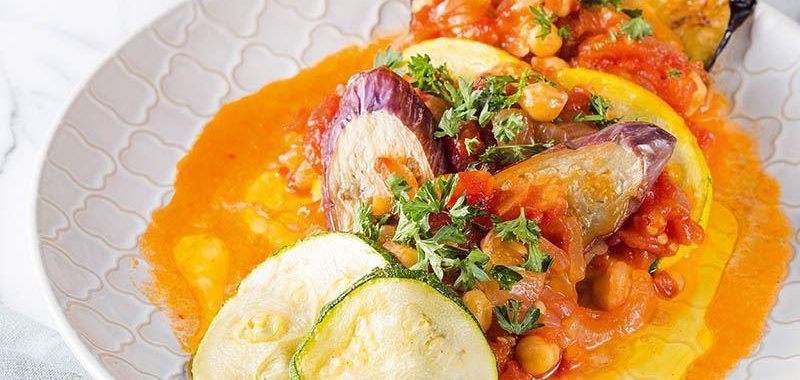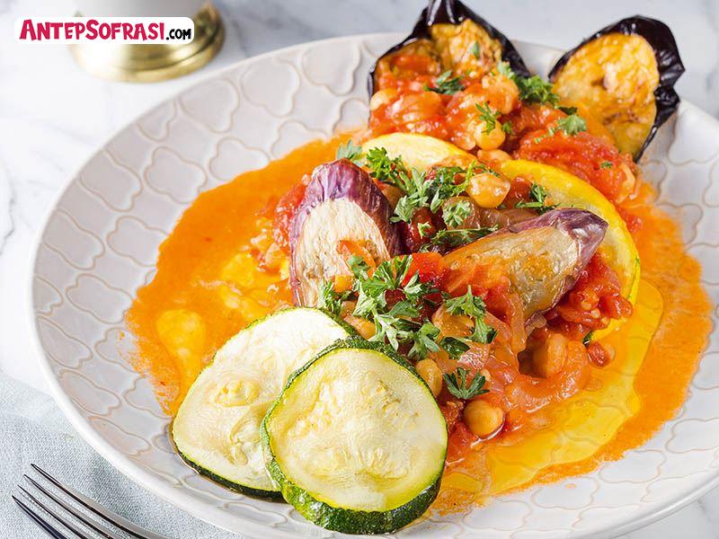 - Fırında pişen sebzeleri sırasıyla bir servis tabağına dizin. Sebzeleri dizerken aralarına ve üzerine pişirdiğiniz domatesli sostan koyun. Hazırladığınız nohutlu imam bayıldıyı ılık ya da soğuk servis yapın.