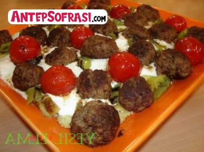 - kızartın. Sarımsaklı yoğurdun üzerine yeşil biberleri onun üzerine de köfteleri dizin. Köfteleri