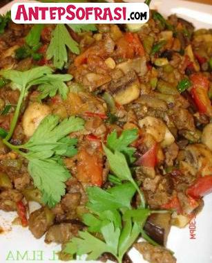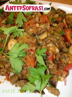 SEBZELİ SAÇ KAVURMA: yarım kg et 100 gr taze fasulye 1 patlıcan 1 kırmızı biber 1 yeşil biber 3 domates 1 tutam taze soğan 10 adet mantar HAZIRLANIŞI:...
