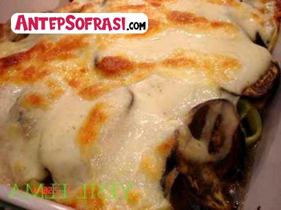 - halka kesilmiş soğan ve biber birsıra patlıcan ve beşamel sos yerleştirin. Tüm malzemeyi kat kat koyun. En üstüne bolca kaşar peyniri rendesi serpin. Üzeri kızarana kadar yaklaşık 15 dakika pişirin. SICAK SICAK SERVİS YAPIN.