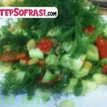 KABAKLI NOHUT SALATASI: 1 su b. nohut(haşlanmış) 1 kabak 2 kırmızı biber(közlenmiş) 1 soğan 1 tutam dereotu zeytinyağı limon suyu,tuz HAZIRLANIŞI: Kab...