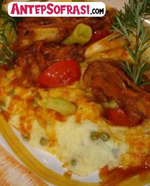 PÜRELİ İNCİK KEBABI: 4 kuzu incik 1 çorba k. salça 1 kuru soğan 2 defne yaprağı 1 domates 2 biber sıvıyağ tuz,tane karabiber Püresi için: 5 patates 1 ...