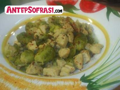 Tencerenize sıvıyağı koyun. üzerine küp doğranmış soğanları ilave edin. Soğanlar sararınca tavuk etlerini ekleyin. Şöyle bir çevirdikten sonra laha...