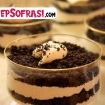 - İçine 7-8 adet oreo bisküviyi parçalayarak atın ve borcama koyarak buzdolabında en az 3 saat bekletin.