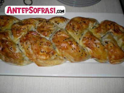 - Hamurumuzu kenarlarından boylu boyunca verev 5'er santimlik şeritlere ayıralım. (hamurun ortası bütün kalacak şekilde)