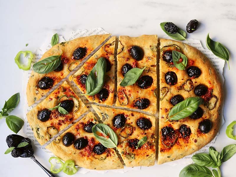 Otlu & Zeytinli Mayasız Focaccia