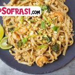 - Daha sonra noodlelari ekleyip 5 dakika daha pisirin. Soya sosu, balik sosu ,tamarind suyu, soya filizi, fistik ve kenara ayirdiginiz malzemeleri katip iyice karistirin.