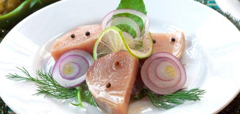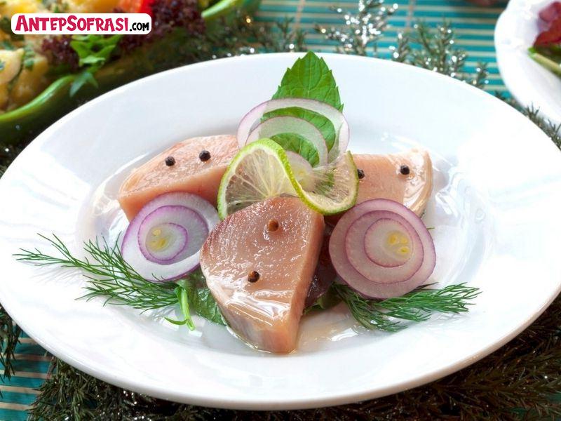 - 20 günün sonunda balıkları kavanozdan çıkartın ve derisini ayırdıktan sonra dilimleyin.