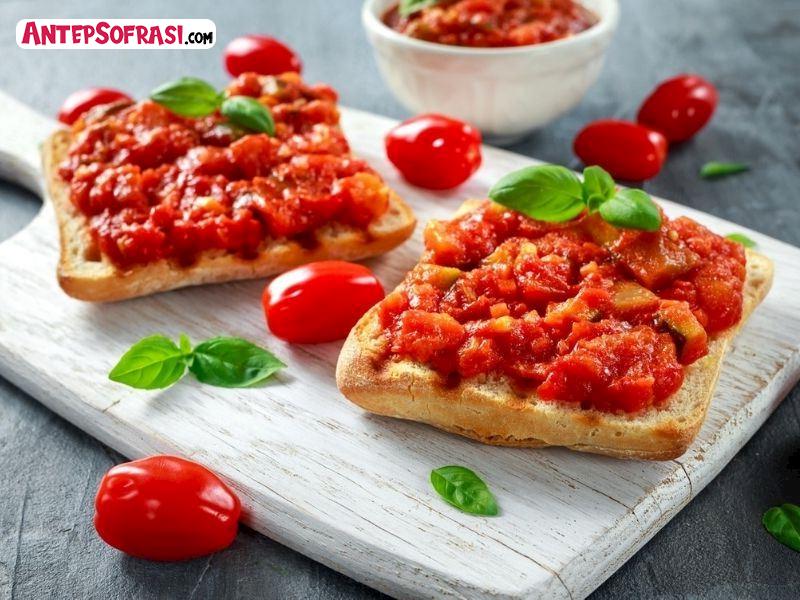 - Bu noktada, domates rendesini ekmeklere yedirebilir veya ekmeğin üzerine ilk önce ezilmiş sarımsağı yedirebilirsiniz.