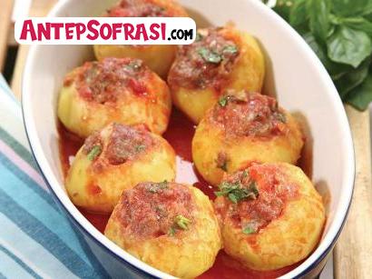 - Kıyma, rende soğan, doğranmış biber, yumurta, doğranmış maydanoz, yenibahar, karabiber ve tuzu yoğurup patateslerin içine doldurun.