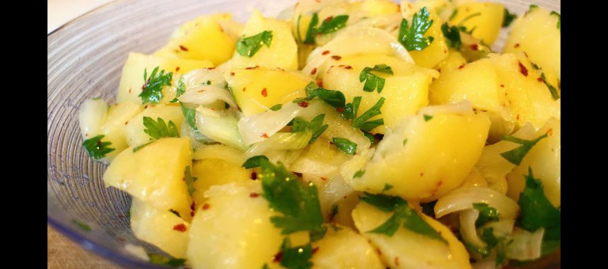 Taze soğanlar soyulur, yıkanır ve ince ince doğrandıktan sonra patateslerin üzerine konur. Ayıklanıp yıkanmış ve ince kıyılmış maydanoz ilave ederek üçü birden karıştırılır. Zeytinyağı, toz biber, limon suyu ve tuz birbiriyle karıştırıldıktan sonra patatesin üzerine gezdirilir.