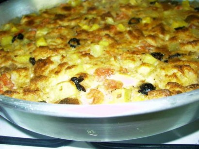 Süt, yoğurt, yumurta ve sıvı yağı karıştırıp bir karışım hazırladım. Bu karışımın içerisine Küp küp doğradığım domates, patates ve ekmekleri, zeytin v...
