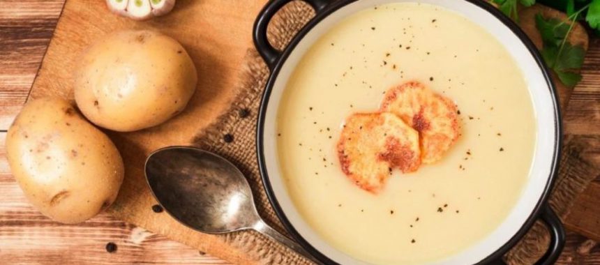 Orta boy bir tavada zeytinyağını, soğanları ve sarmısakları 7 dakika çevirin (renkleri değişmesin). Ardından patatesleri ekleyip kaynamaya bırakın. Tavuk suyunu ve baharatları ilave edin. Patatesler tamamen yumuşayana kadar kaynatmaya devam edin. Rokaları ekleyin ve karışımı mutfak robotunda çekin (püre haline gelmeyecek şekilde). Tekrar tavaya dönün. Kısık ateşte zeytinyağını ısıtıp Sarımsak ve acı biberleri çevirin, yağın çok ısınmamasına özen gösterin. Çorbayı, üzerine bu yağdan 1 kaşık gezdirerek servis edin.