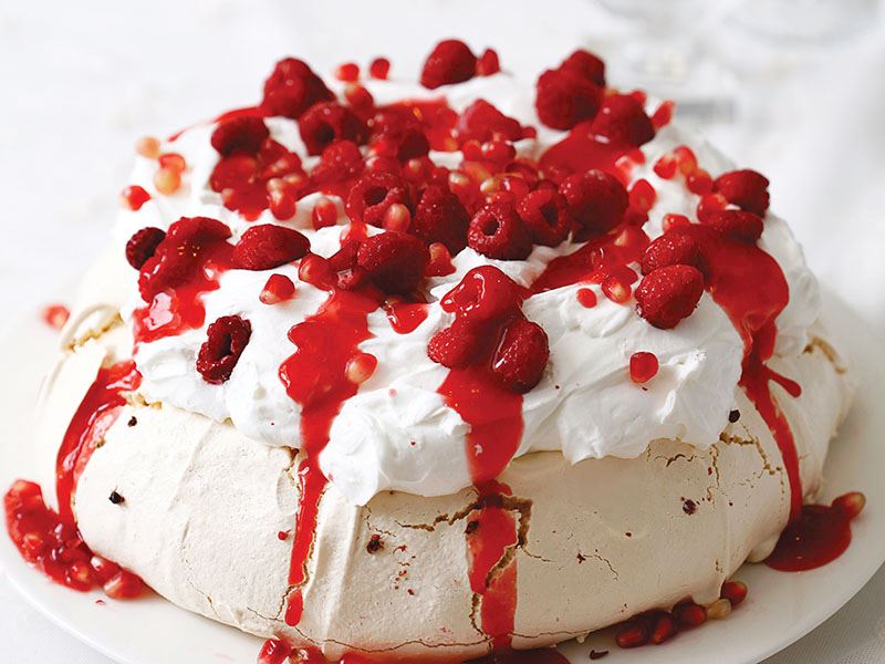Fırını 120 derecede ısıtıyoruz. Yumurta akını ister poşetle ister iki kaşık yardımı ile 6 eşit parçalara ayarlayarak yağlı kağıt serilmiş tepsiye düzgünce paylaştırıyoruz. Kaşığın arkasıyla ortalarını hafif çukurlaştırıyoruz (labne kremasını koyarken kolaylık olur). Her pavlovanın çapı yaklaşık 10 cm oluyor. Önceden ısıtılmış 120 derece fırında 60 dakika pişiriyoruz. Sonra fırını kapatıyoruz ve fırın kapısı kapalı olarak 45 dakika da sönmüş fırının içinde bekletiyoruz.