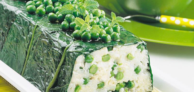 - Pilavı ilave edip dışa sarkan yaprakları içe doğru katlayarak pilavın üzerini kapatın. Üzerini haşlanmış bezelye ile süsleyin.